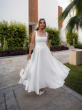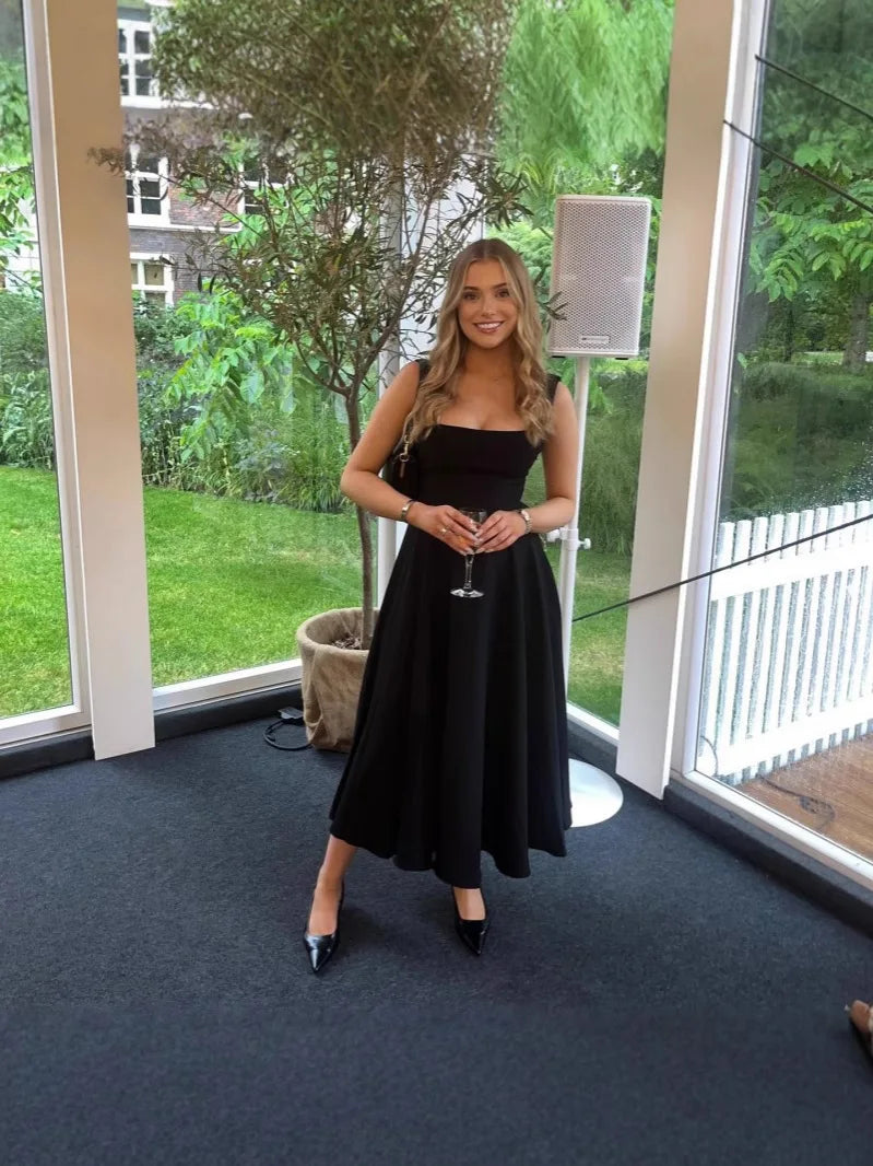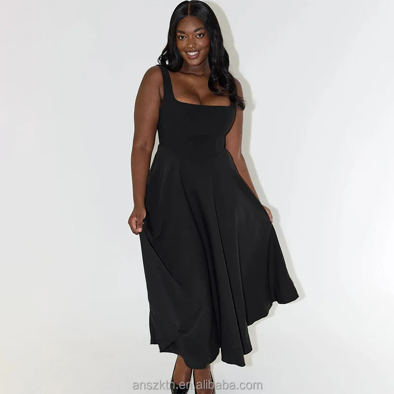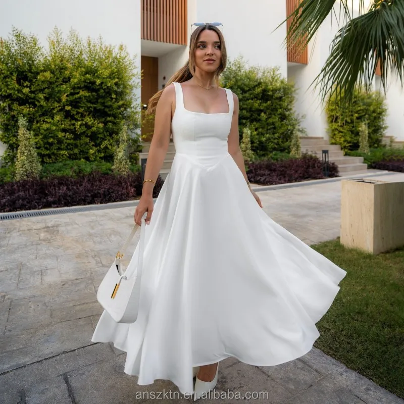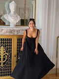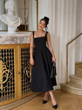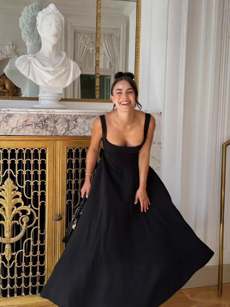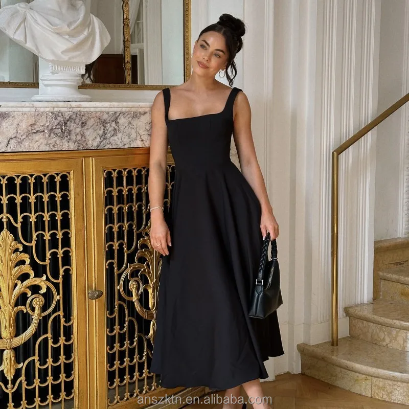 ANSZKTN 2025 Summer New Solid Color Square Neck Sleeveless Strap Long Fashion Women's Dress