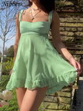 Nibber Vestidos Elegantes Para Mujer Solid Color Cutout Slim Sling Dress Sexy Backless Ruffle Dress Female2023