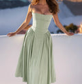 Women's Summer 2025 New Solid Color Fashion Elegant Retro Style Dopamine Belt Long Dress Women's Wear